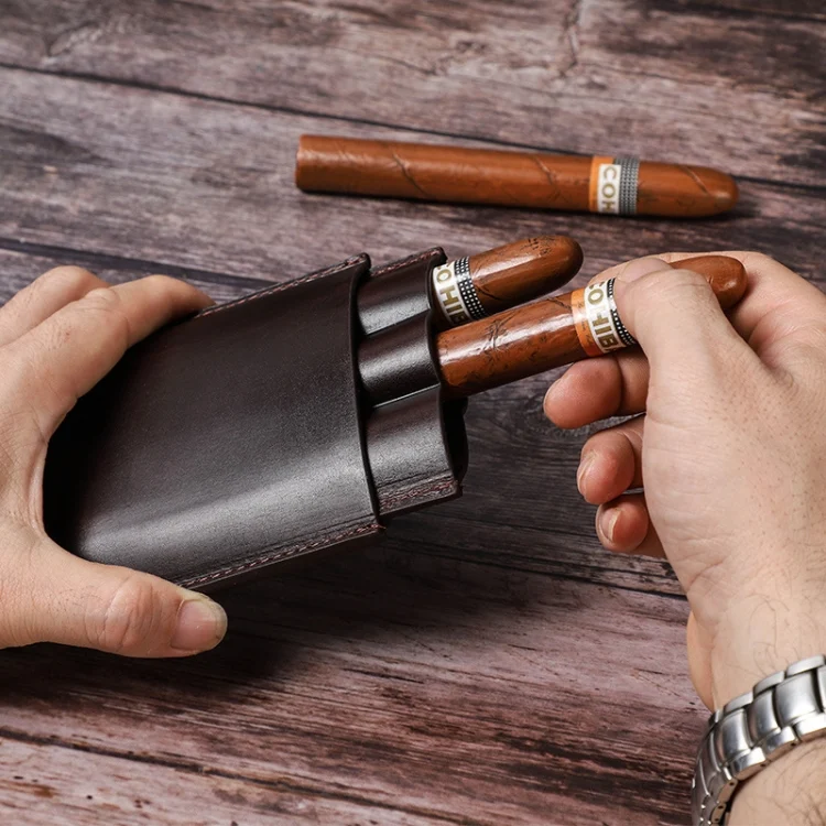 CF5003 Outdoor Travel Portable Cigar Humidor Leather Cigar Cover Can Hold 3 Cigars