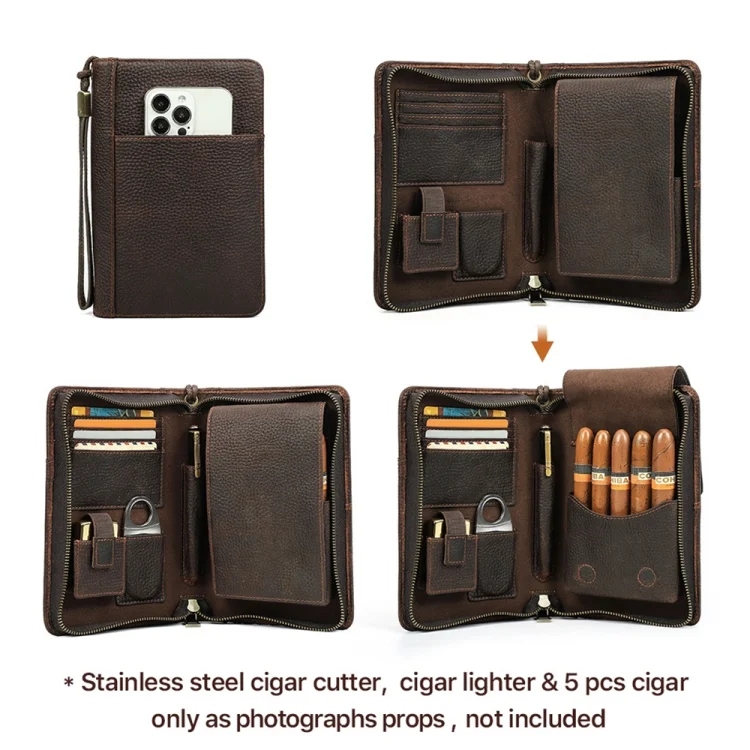 CONTACTS FAMILY CF5009 Genuine Leather Multifunctional Travel Convenient Cigar Box with Wrist Strap