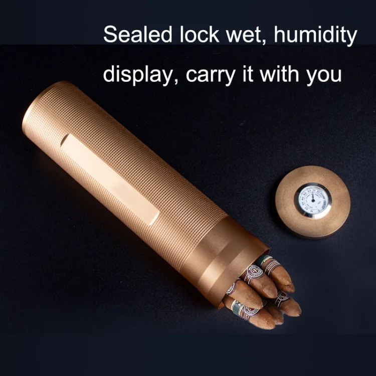 Metal Humidor Cigar Tube Humidifier Storage Bin Humidity Display