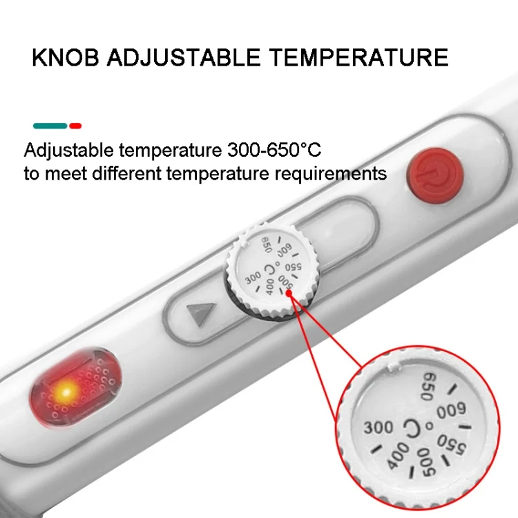 3. Knob temperature adjustment, adjustable temperature 300-650 degrees Celsius, to meet different temperature needs