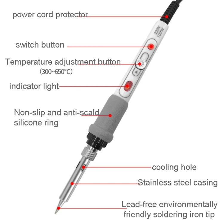 1. 100W high power, 6 seconds to heat up, fast tinning, static protection, safe and anti-scalding