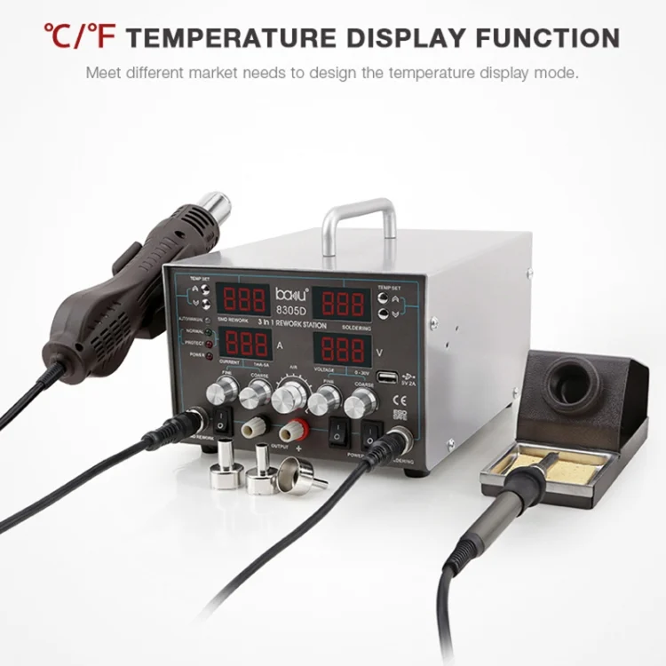 1. With 3 in 1 functions of hot air gun, desoldering station and electric soldering iron