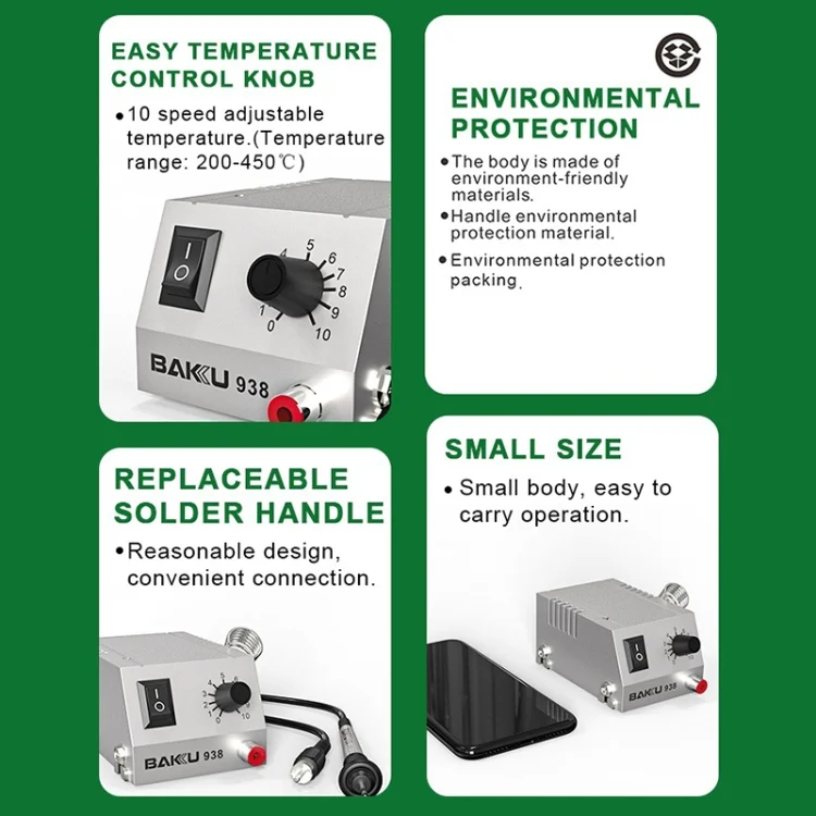 BAKU BK-938 Powerful Mini Anti-static Soldering Station Welder Machine, EU Plug (Silver)