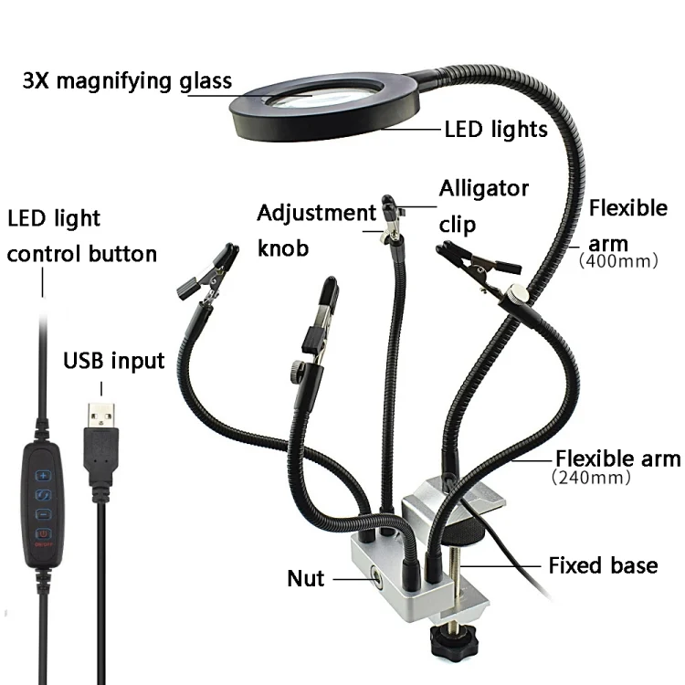 LED Lamp Magnifying Glass 360-Degree Adjustable Welding Table