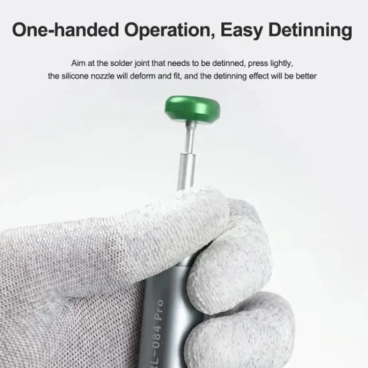 2. Aim at the solder joint that needs to be detinned, press lightly, the silicone nozzle will deform and fit, and the detinning effect is better