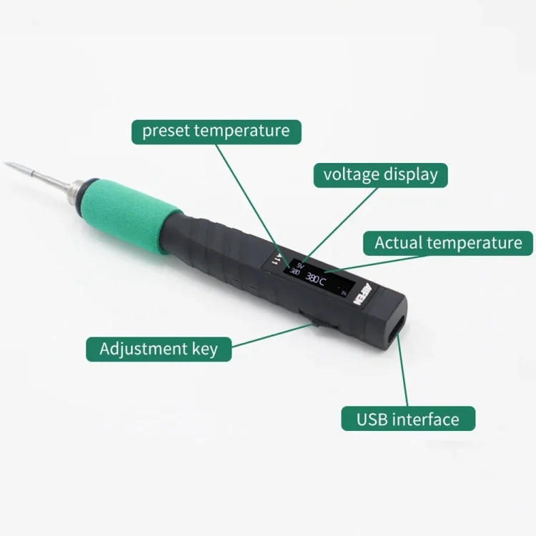 2. Temperature Control: The soldering tool features temperature control functionality, allowing adjustment of soldering temperature to accommodate different soldering requirements and materials.