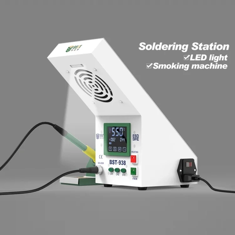 BEST BST-938 LED Electric Iron Smoking Instrument Smoke Purifier Soldering Station with Exhaust Fan