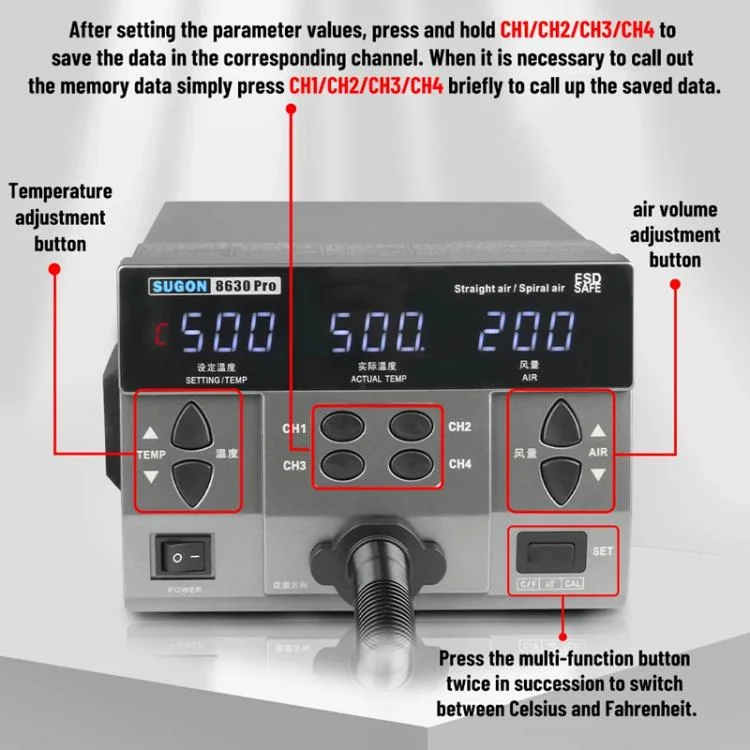 SUGON 8630 Pro Large Wind Power Cell Phone Repair CPU Digital Display Hot Air Soldering Station