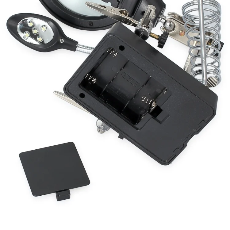 5 LED Auxiliary Clip Magnifier AC/DC Interchangeable with Soldering Stand & Two Magnifier, EU Plug(Silver)