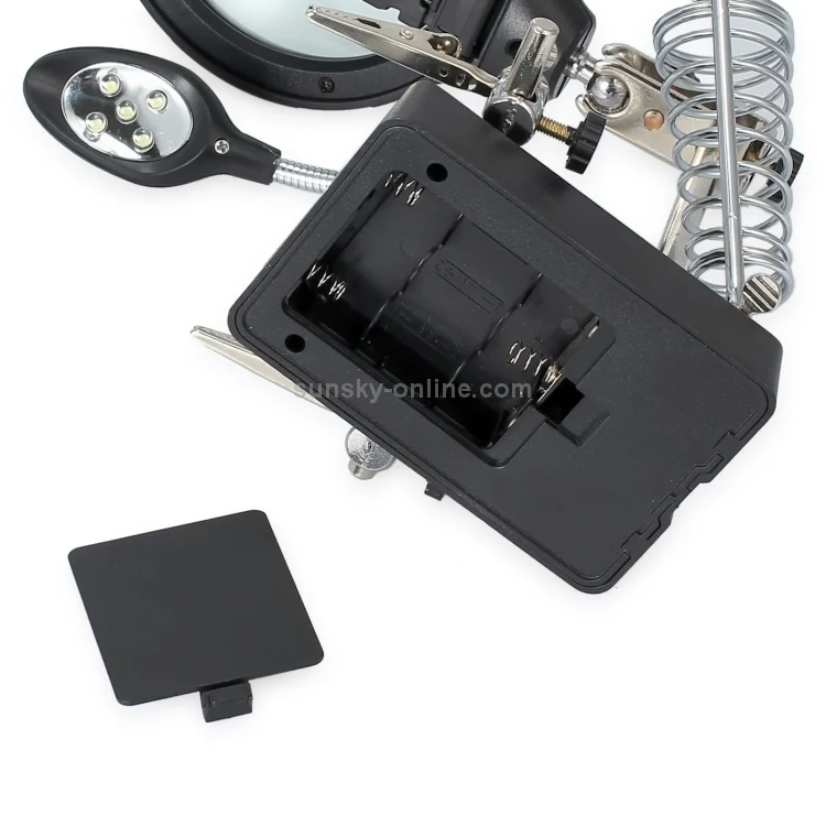 5 LED Auxiliary Clip Magnifier AC/DC Interchangeable with Soldering Stand & Two Magnifier, US Plug