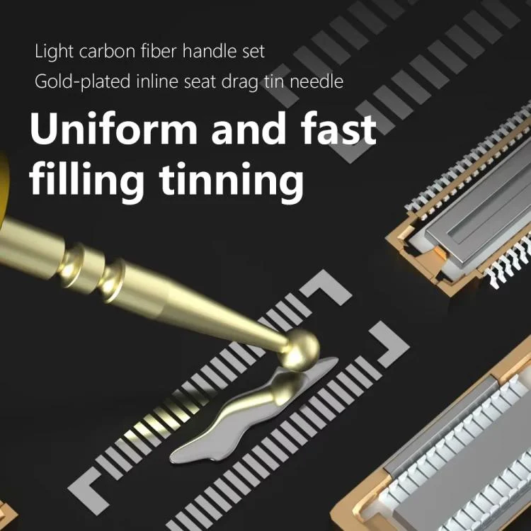 1. Gold-plated inline tinning needle, pure copper gold-plated, light carbon fiber handle set