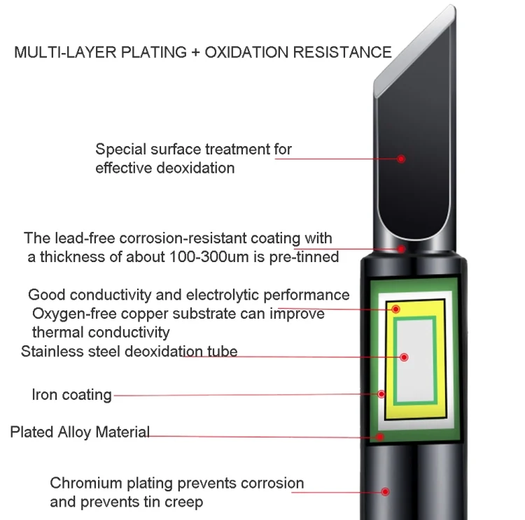 1. Multi-layer electroplating + oxidation resistance treatment, anti-corrosion, anti-sn climbing
