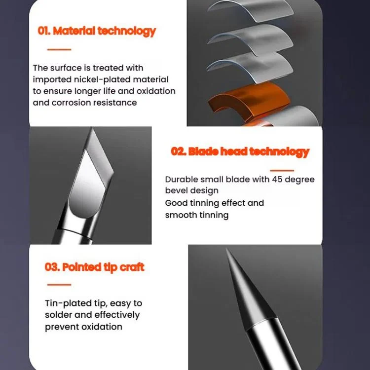 4. Blade technology: durable small blade, 45-degree bevel design, good tinning effect, smooth tinning