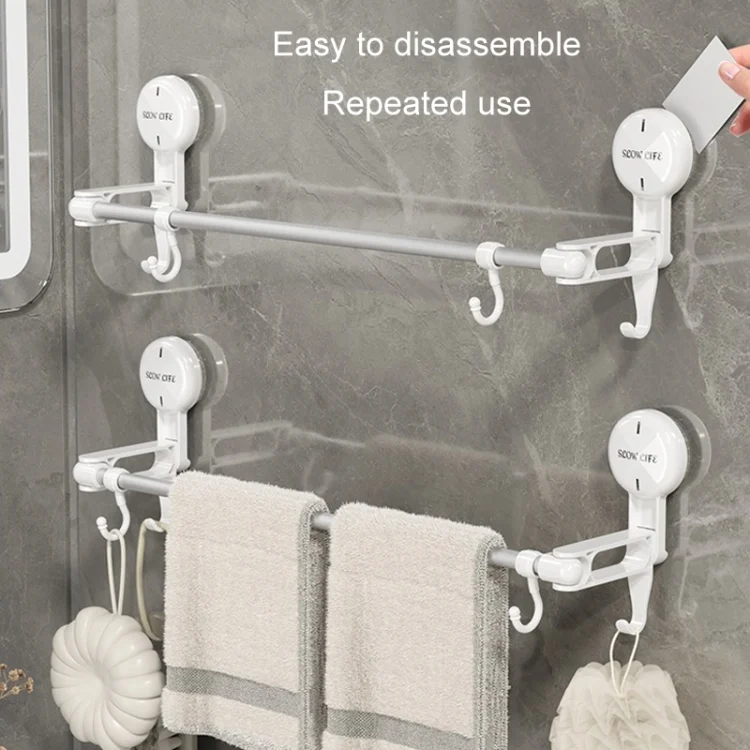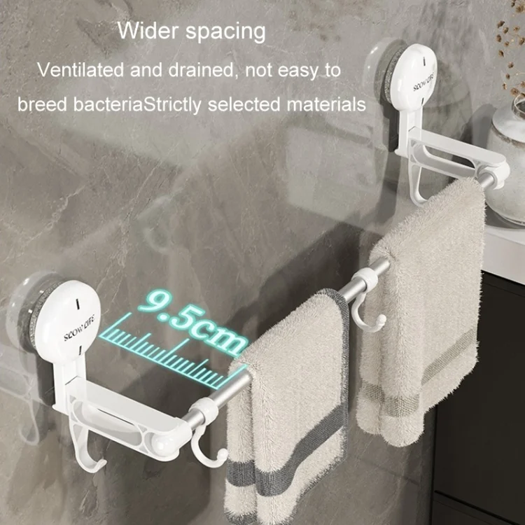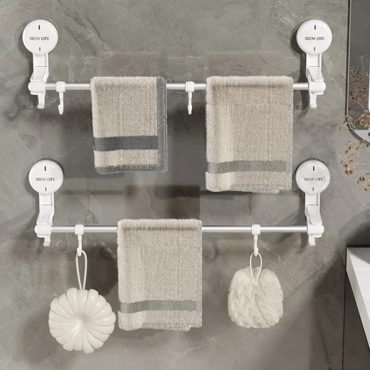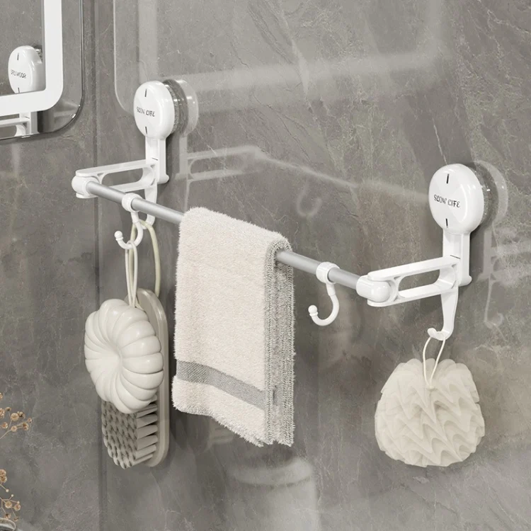 Suction Cup Towel Rack Home Rotating Shelf Kitchen Bathroom Storage Hanger Movable Hooks