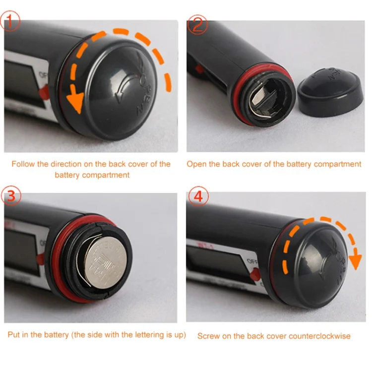 2) Open the battery cover by swirling anti clockwise, replace the battery, then close the battery cover tightly by swirling clockwise.