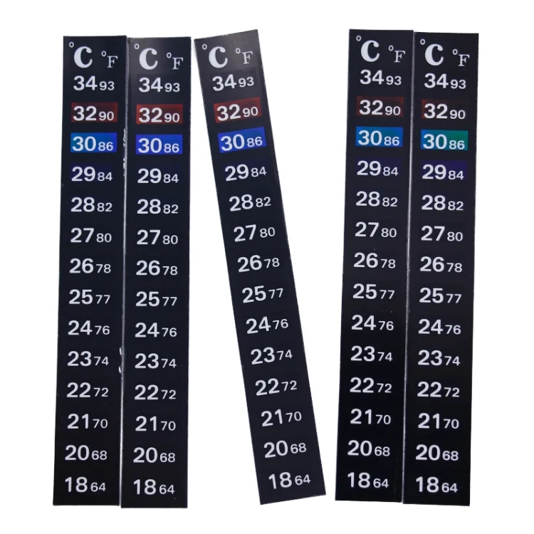 ???? This product is made from a material that develops color at different temperatures. The temperature can be quickly detected, and the temperature of the water in the aquarium can be measured within a few seconds.