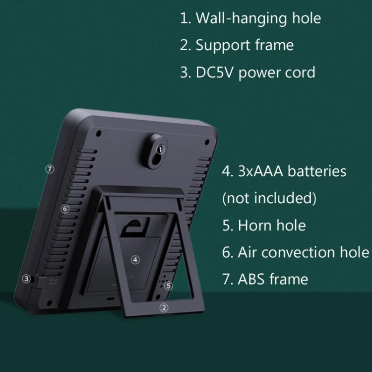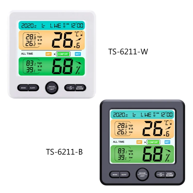 5. Function: Temperature, humidity, time, alarm clock, calendar, week, over-limit alarm