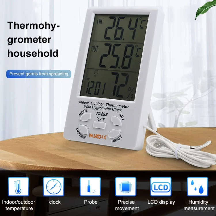 TA298 Digital LCD Humidity / Hygrometer and Thermometer with Extra Sensor Cable