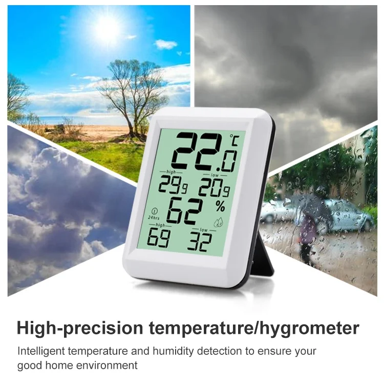 2. Features: high and low temperature humidity display, ABS shell