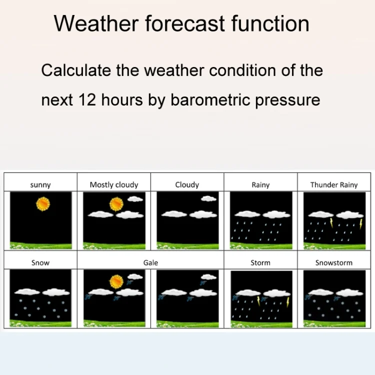 9. Barometric pressure detection range: 600-1100hPa; 17.72-32.48inHg; 450-825.1mmHg