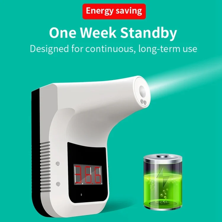 7. Intelligent infrared forehead thermometer, no need to hold, can be hung / double-sided adhesive tape / bracket fixed.
