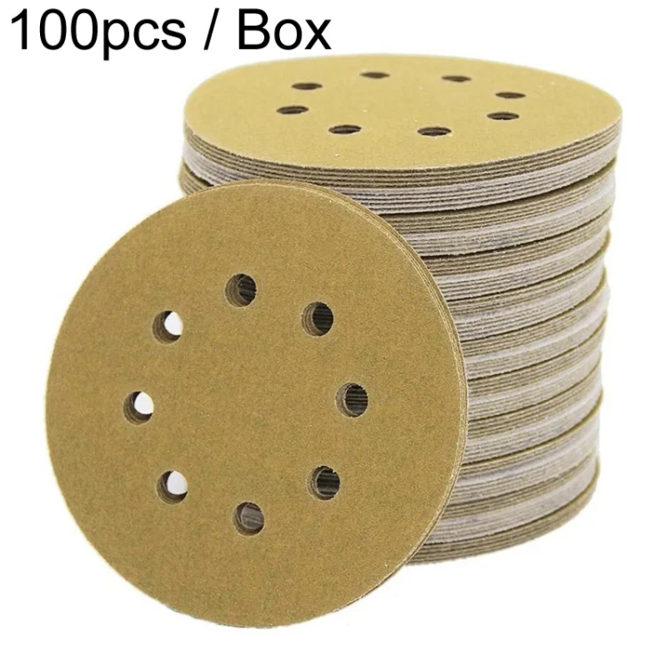 100pcs / Box 5 Inch 8 Holes Round Disc Sanding Sandpaper 125mm Yellow Sand Flocking Sheet