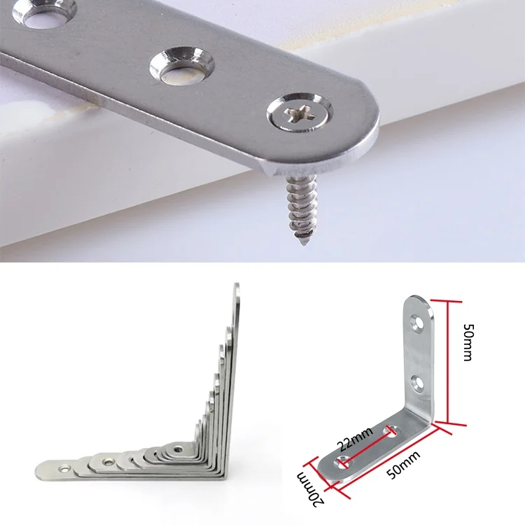 10pcs Stainless Steel 90 Degree Angle Bracket,Corner Brace Joint Bracket Fastener Furniture Cabinet Screens Wall (50mm)