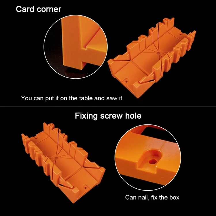 3. About 4mm self-tapping screws shall be used for the saw box, which shall be fixed on the wooden table or board surface to avoid sliding the box back and forth during sawing, thus affecting the accuracy.