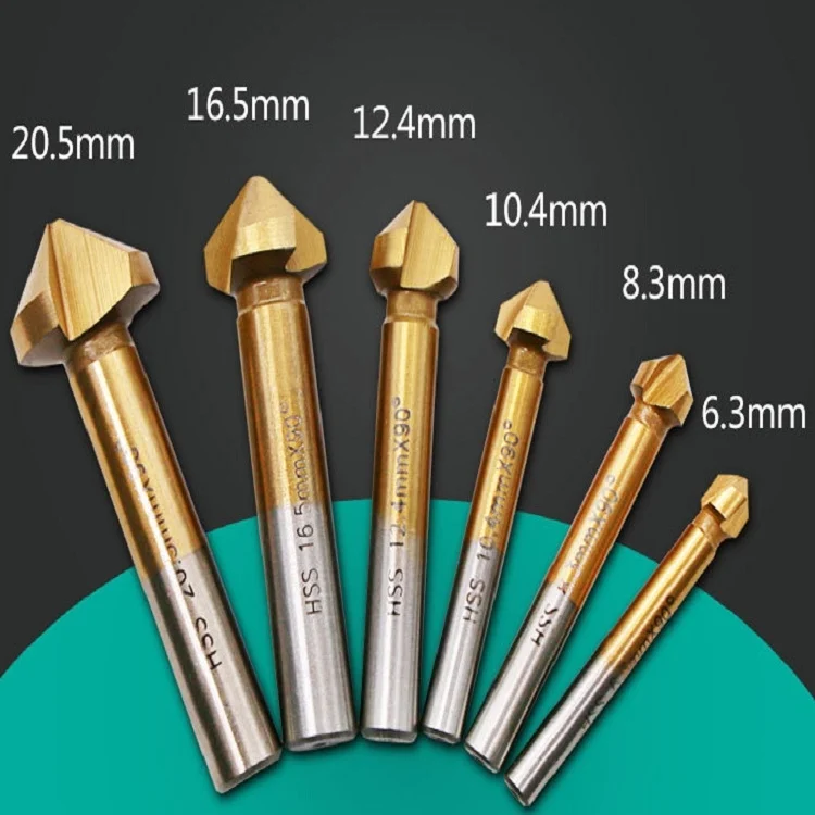 6 In 1 90 Degree Three-edge Chamfering Knife Woodworking Milling Cutter Chamfering Machine Hole Opener