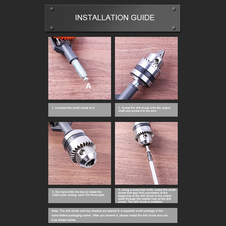 3-jaw chuck , smooth gear and comfortable anti slip handle.