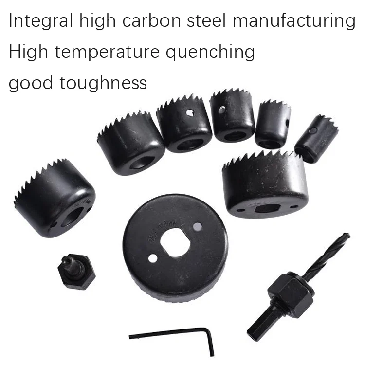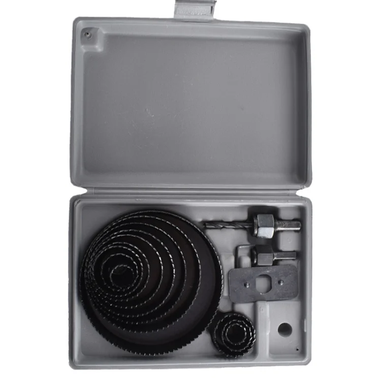 – Hole saw x12: about 19/28/38/22/32/44/51/64/76/89/102/127mm in diameter