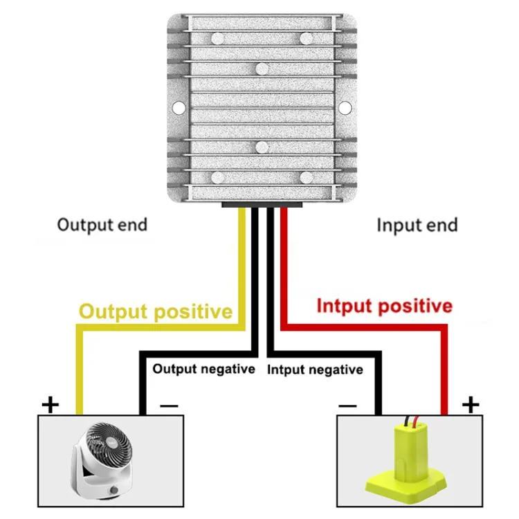 The step-down converter does not have reverse connection protection function. Please be sure to confirm the positive and negative poles of the adapter and the load before wiring to avoid reverse connection and burning the step-down converter and the load;