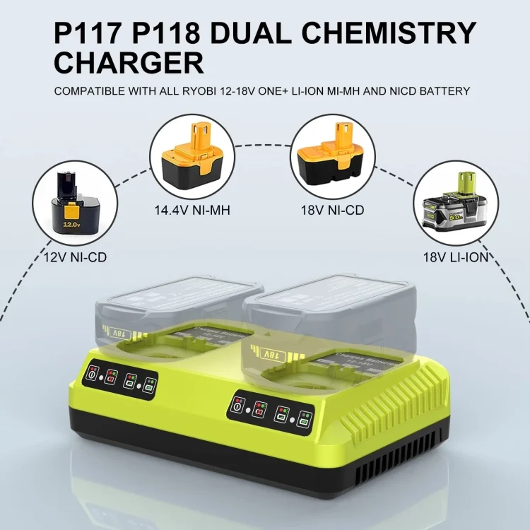 For RYOBI P108 / P117 12-18V Lithium Nickel Battery Dual Port Charger