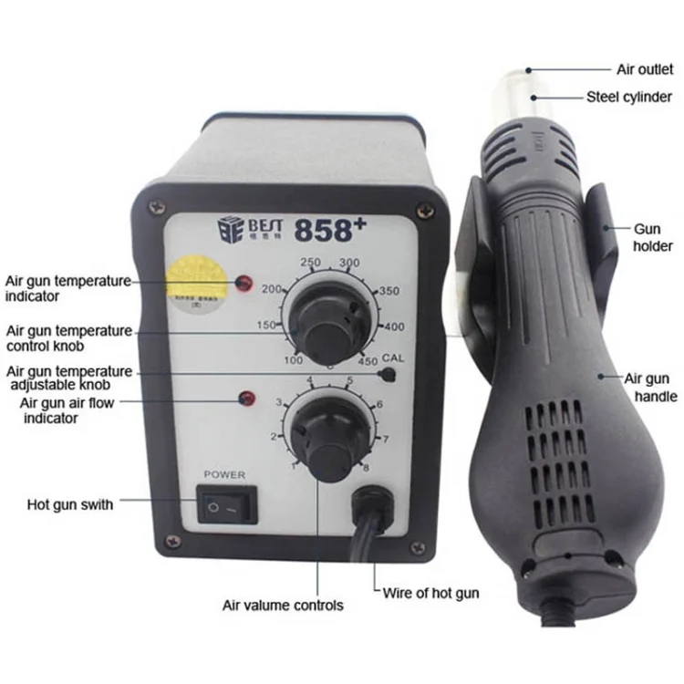 BEST BST-858+ AC 220V 50Hz 650W Adjustable Temperature Unleaded Hot Air Gun with Helical Wind