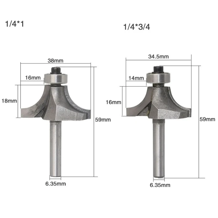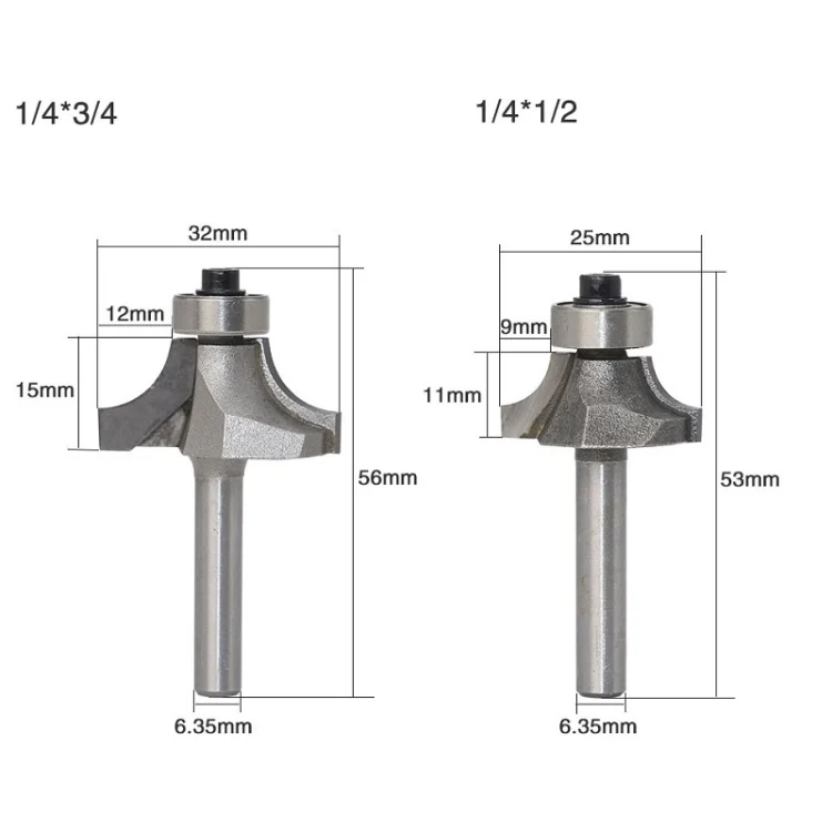 4 PCS/Set Round Corner Woodworking Cutter Trimming Machine Alloy Cutter Head