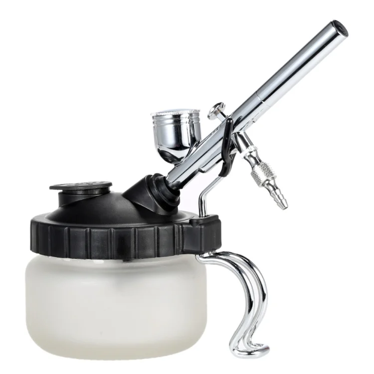 6. Function: after the airbrush is used up, spray the solvent into the pot. After standing for a period of time, the solvent and liquid in the bottle will naturally stratify under the action of gravity, and then clean the airbrush. the solvent is recycled, and it can also be used as a simple airbrush holder. the whole device plays a cleaning role in the subsequent maintenance of the airbrush