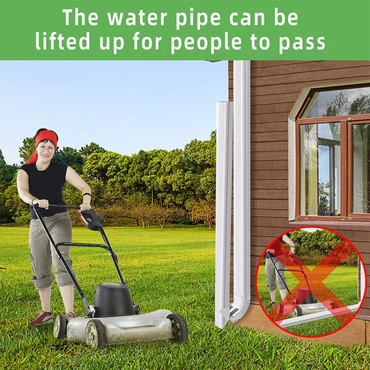 1. Being able to lift the downspout up and out of the way keeps you from crushing and damaging the downspout extension when you need to do lawn care! Using downspout extensions is a great way to move water in your gutter system away from your homes foundation.