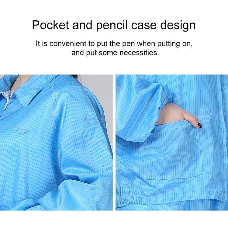 Anti Static Split Lapel Dustless Clothing Food Protection Stripe Clean Clothes