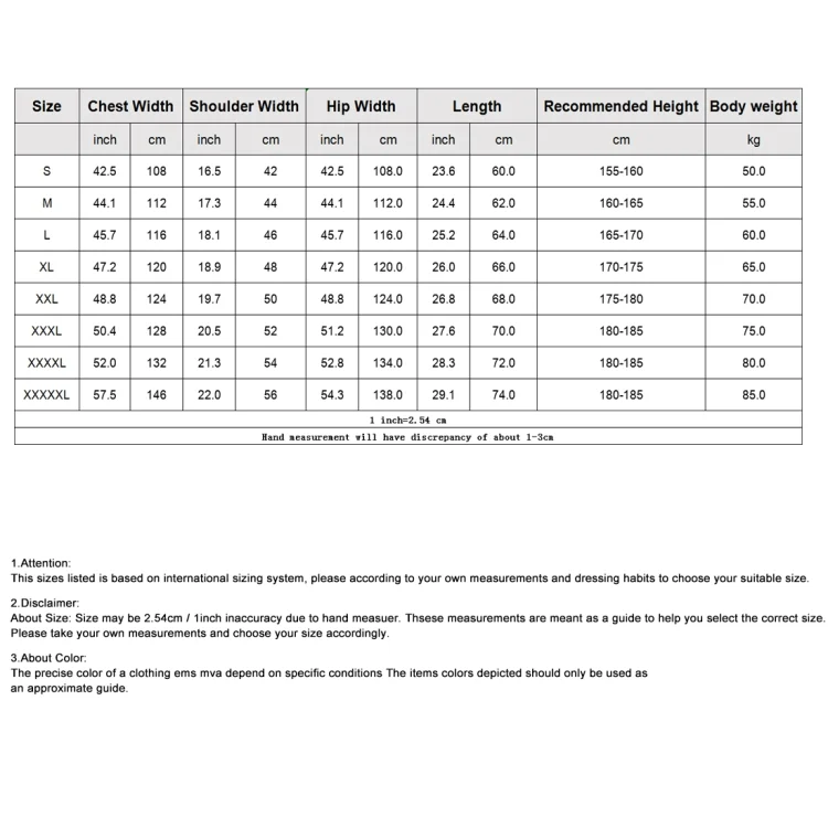 4. Size: S / M / L / XL / XXL / XXXL / XXXXL / XXXXXL