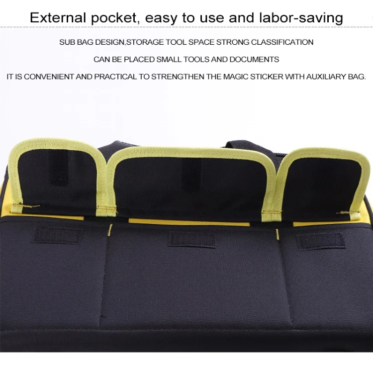 4. Sub-bag design, storage tool space strong classification fine, can place small tools and documents, sub-bag self-brought to strengthen magic stickers, release tools waterproof, convenient and practical.