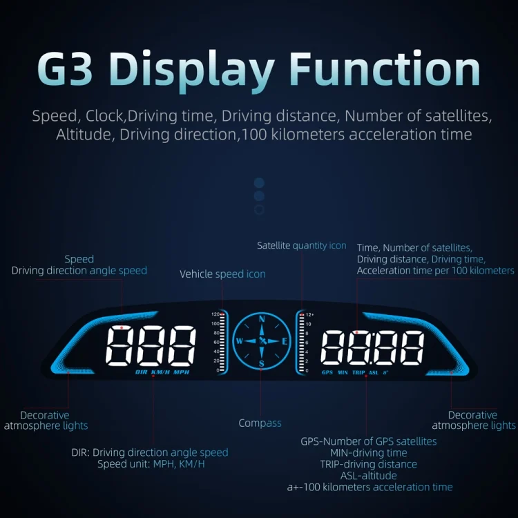 G3 Car 5.5 inch HUD Head-up Display HD GPS Speed Alarm Odometer