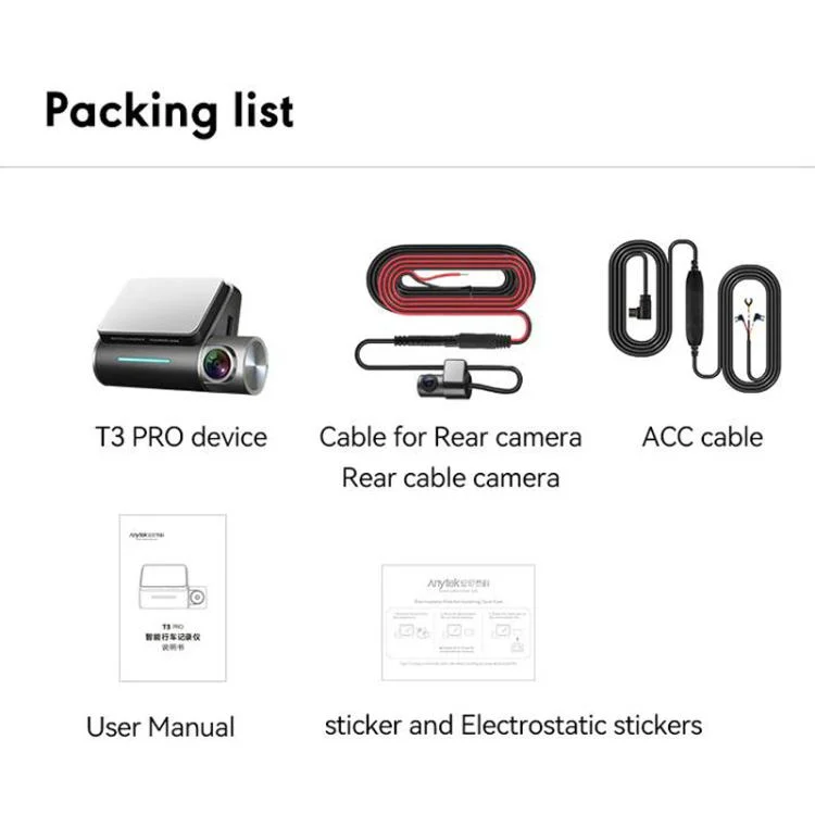 Anytek T2 PRO 3.0 Inch 2K HD Night Vision Recorder Hidden Car Camera Front And Rear Dual Recording