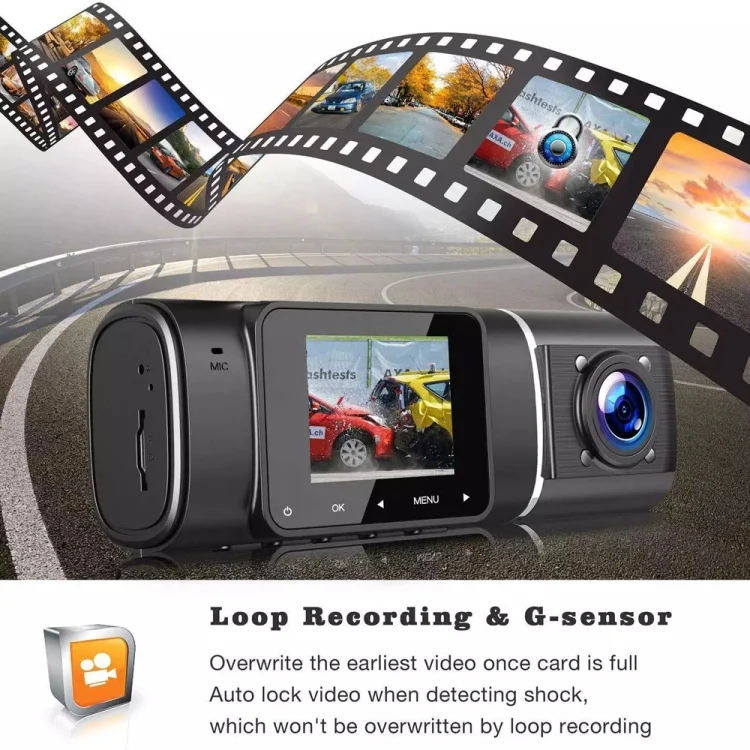2. Dual 1080P front and rear synchronized video recording, more convenient and safer to monitor all the situation in front of the car, inside the car and behind the car