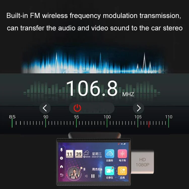 16. Built-in FM wireless FM transmission, you can transfer the audio and video sound to the car audio