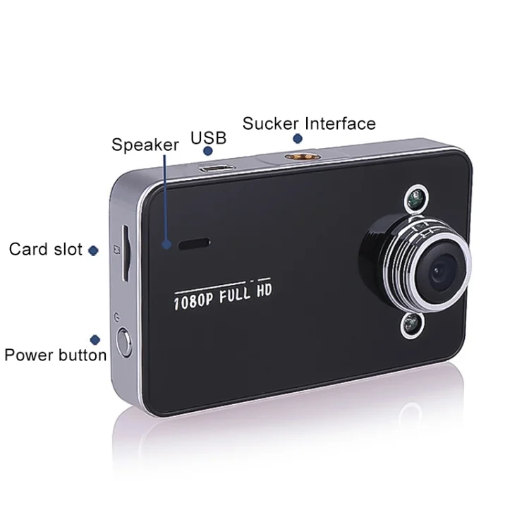 K6000 2.3 inch 90 Degrees Wide Angle Full HD 720P Video Car DVR, Support TF Card (32GB Max) / Motion Detection, with 2 Night Vision Fill Lights