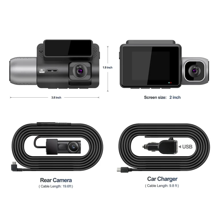M700A 3 Channels Car Recorder 4K UHD Front+1080P Inside+2K Rear+GPS+WIFI Dash Cam