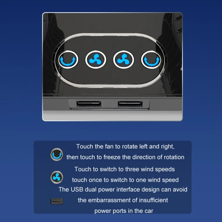 7. Touch the fan to rotate left and right, then touch to freeze the direction of rotation