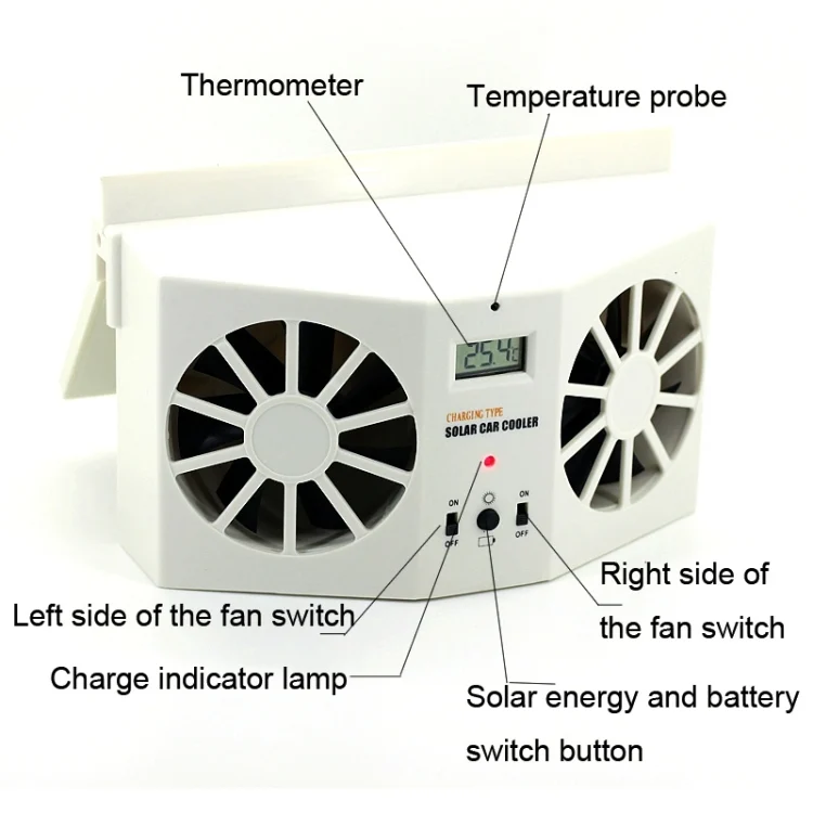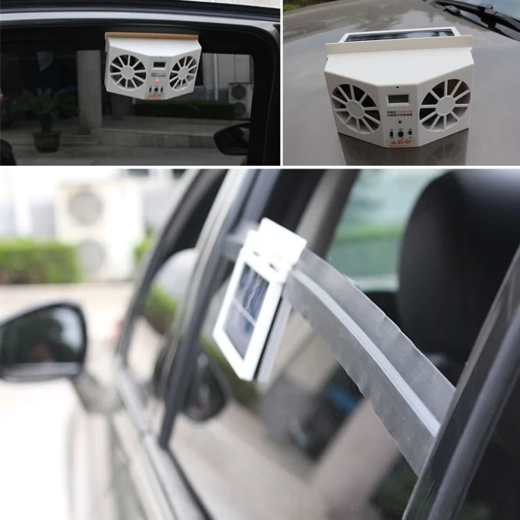 2W Solar Powered Car Auto Air Vent Cool Fan Cooler Ventilation System Radiator, with Temperature Display
