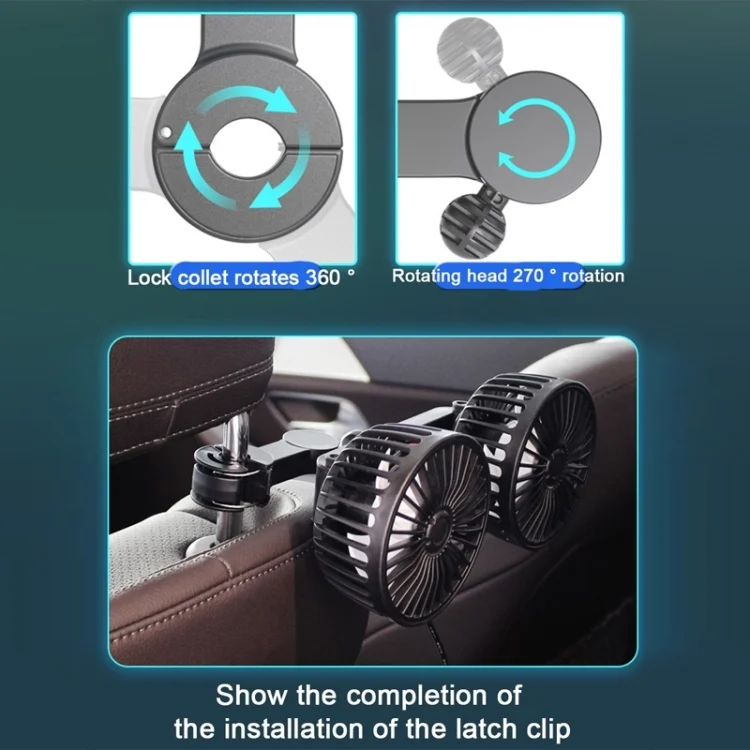 5V 2A Car Rear Seat Back USB Interface Powerful Double-headed Fan