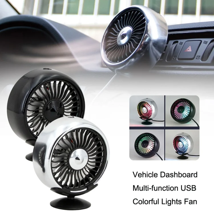 F102 Vehicle Dashboard Multi-function USB Colorful Lights Fan